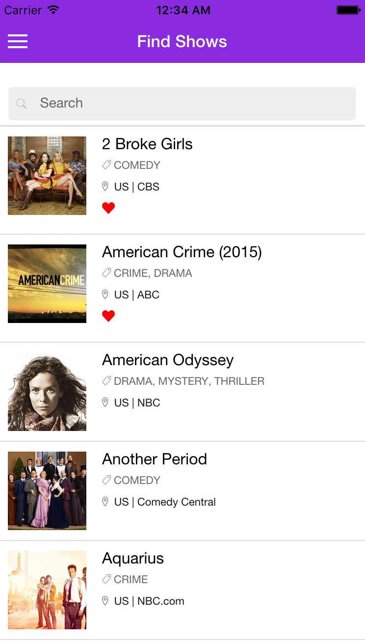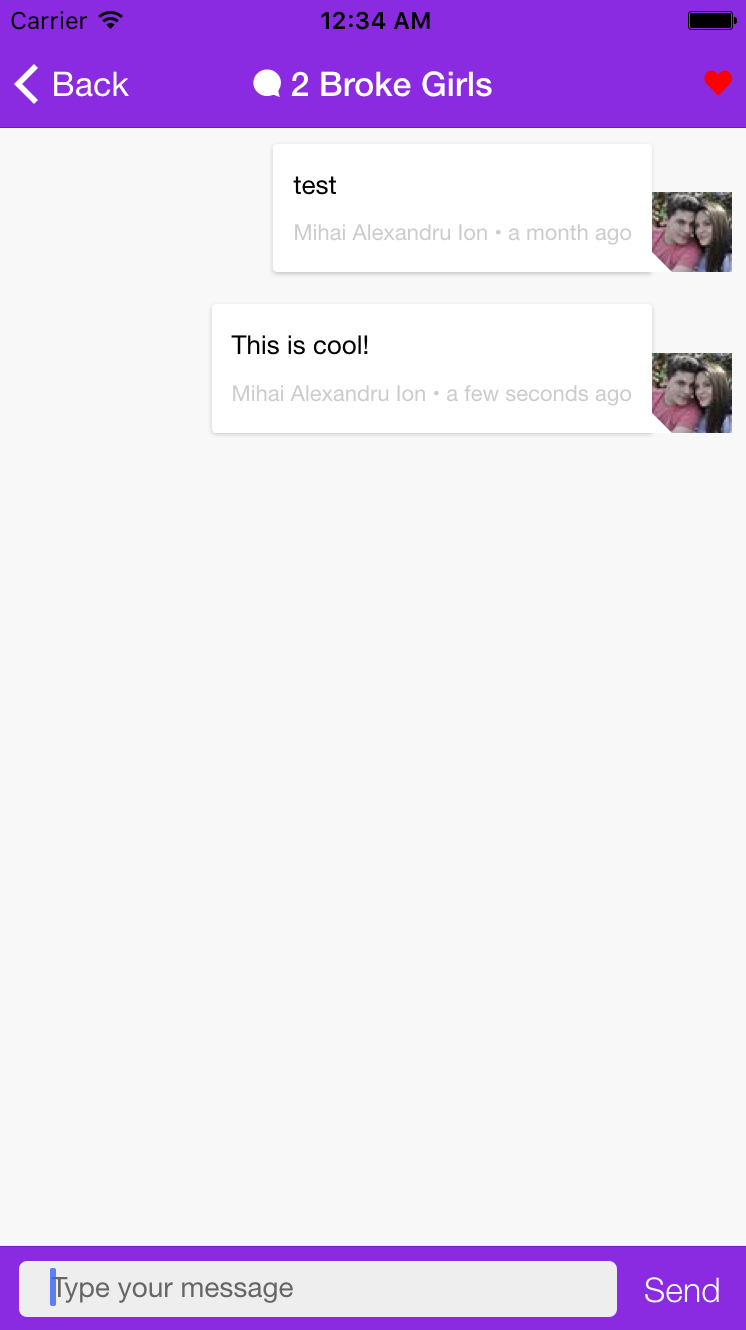 Tv Chat app that gives the user the posibility to login using facebook; it then gives him/her a list with tv shows which he/she can add to favorite or discuss with others about it.