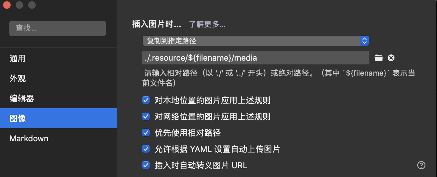 图片保存到当前Markdown文件路径下的`./resource/文件名/mdeia/` 目录,Markdown插入时使用相对路径