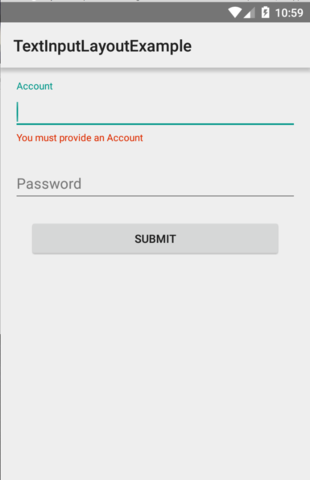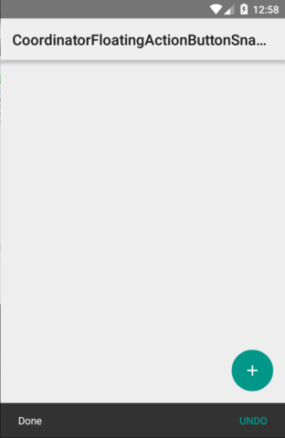 AndroidDesignSupportLibraryExamples Simple examples for Android Design Support Library NavigationViewExample TextInputLayoutExample FloatingActionButtonExample SnackBarExample TabLayoutExample CoordinatorFloatingActionButtonSnackBarExample CoordinatorToolBarExample CoordinatorCollapsingToolBarExample